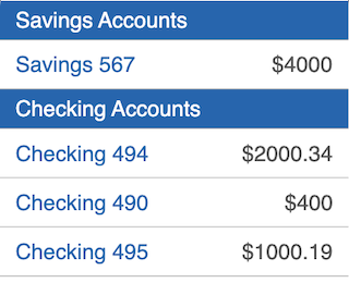 For example, if you scroll the segment data shown in the following figure, as the segment data scrolls up, the Savings Accounts docked section header moves out of view and is replaced with the Checking Accounts section header, which is now docked.
