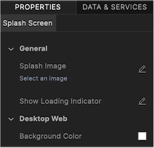 In the Project Explorer, on the Project tab, expand the Mobile channel, and then click Splash Screen. Its properties display in the Properties pane.