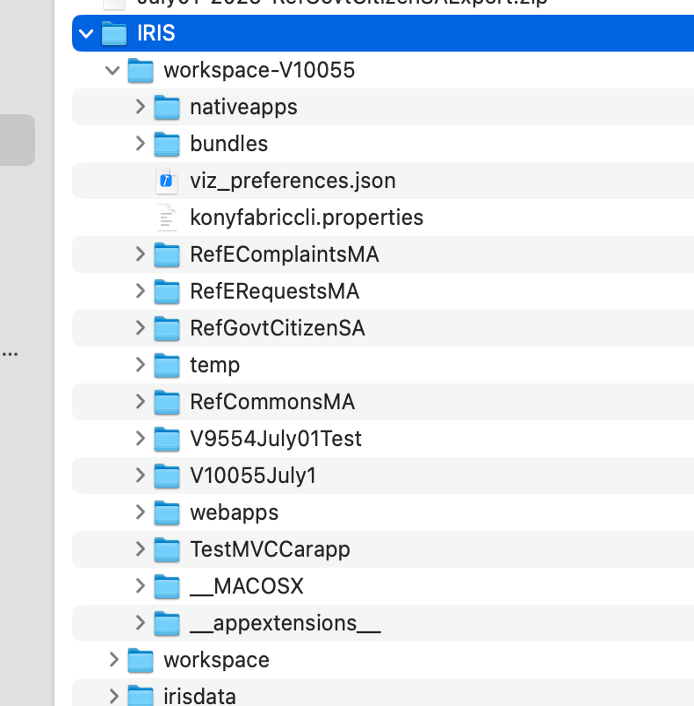 A workspace is a repository for the projects that you create, and it resides on your computer as a folder. You can keep all your projects in one workspace, or you can cluster related projects together by creating multiple workspaces. When you launch Volt MX Iris, it prompts you to indicate the workspace that you want to work in. The default workspace is home to the Volt MX Iris sample app.