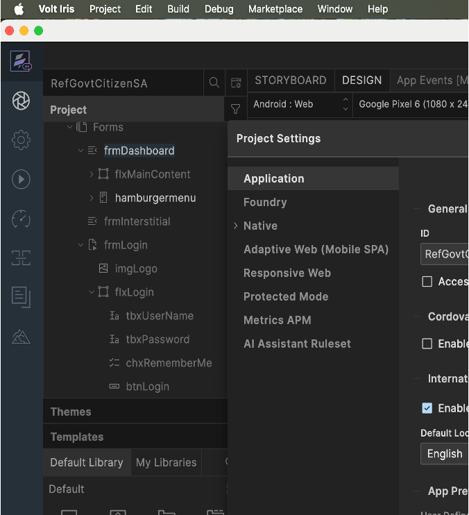 4. Click OK. Volt MX Iris prompts you to save your current project if any elements require saving, and then it restarts, accessing the workspace that you just selected.