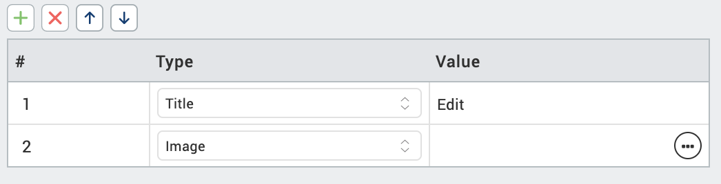 Select the type from the Type list. Options are Image, Title. System Item, and Custom. Based on your selection, how you enter the value pair changes.