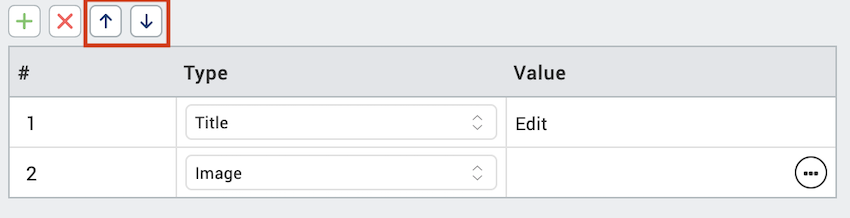 If you want to change the order of the Bar Button Items, you can move them up and down using the up arrow and down arrow icons. You must select the Bar Item to move it up or down.
