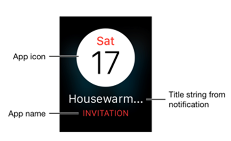 Notifications: The watch app supports local and remote notifications. The two stages of notifications are short look and long look. When you receive a notification, the short-look notification appears. You can add user actions, graphics, and content to notifications.