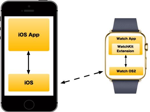 - A WatchKit Extension process that executes the watch app's application logic. This is bundled with your Watch app and runs on the Apple Watch.