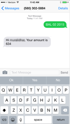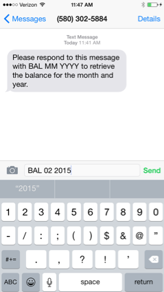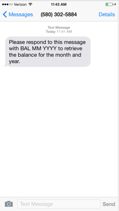 BAL 02 2015,where 02 is the month and 2015 is the year for which the balance is to be retrieved.