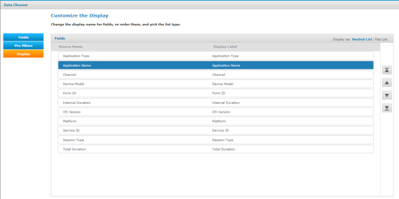 Note: Selecting display fields in the Fields screen is a mandatory step.