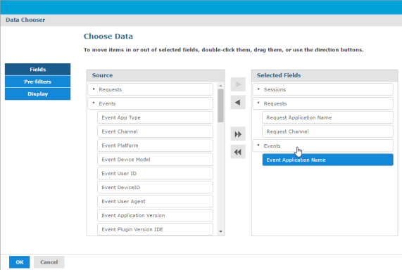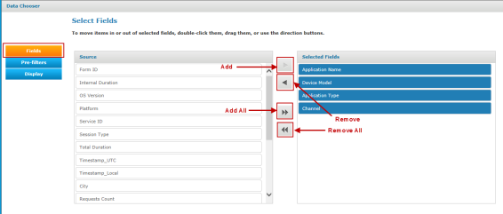 to move an item from Source pane to Selected Fields pane. - To move all the items from Source pane to Selected Fields pane, click Add All