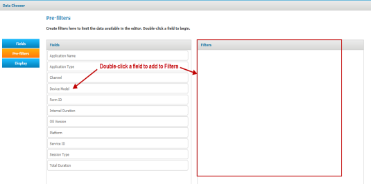 Click Pre-filters. This is an optional setting if you want to restrict data available to the report builder.