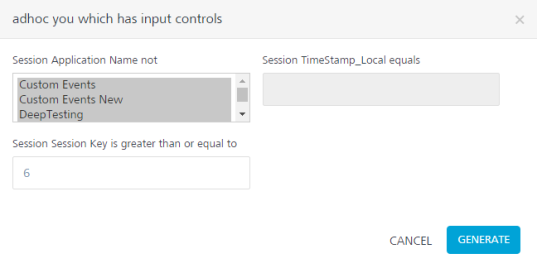 - If the report has filters a pop-up will be shown as shown below with the filters (input params).