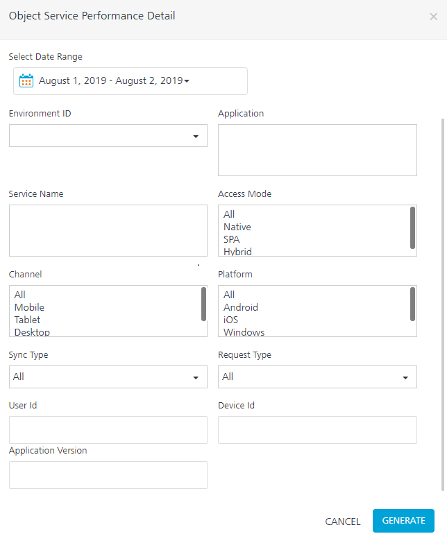Note: Object Service Performance Detail Report shows only error-free transactions.