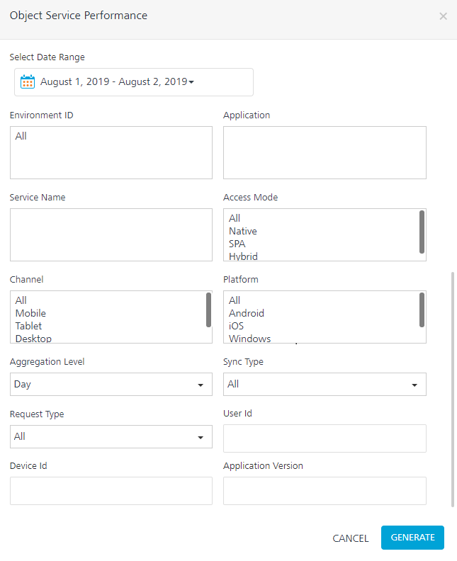 - Request Type: Request type enables you to view the performance of object service separately for upload and download. Upload and Download are the two request types. The default value is both.