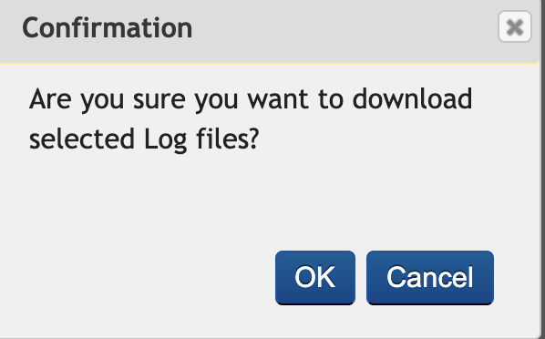 A pop-up appears with the message, Are you sure you want to download selected Log files?.