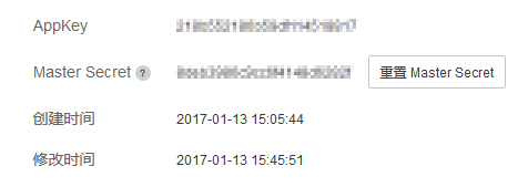 Record the Appkey and the Master Secret for your reference.