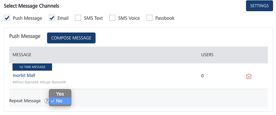 Push Message: Click the Compose Message button in the Push Message grid to compose the push notification message.