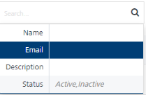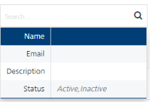 Status: Enter the status as active or inactive in the search field and click Enter.