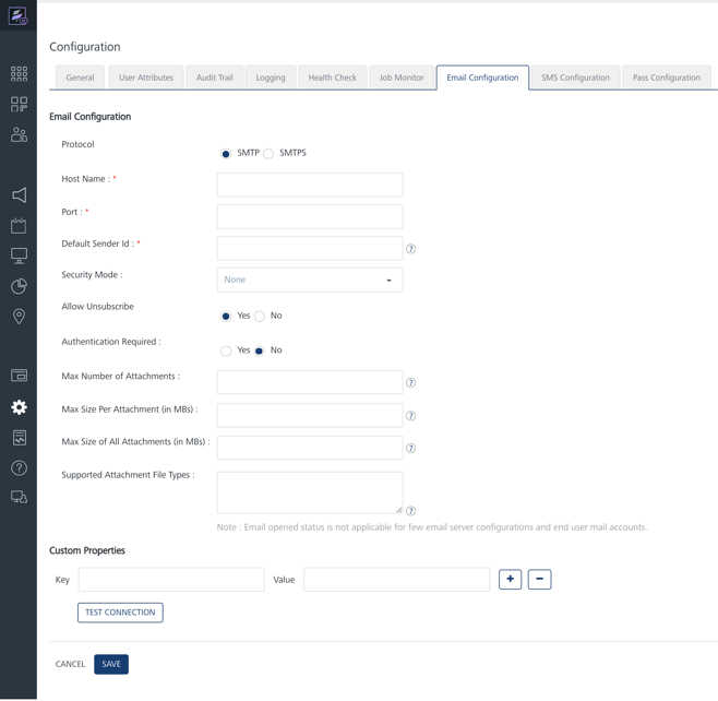 Max Number of Attachments: This configuration restricts the max no. of attachments that can be sent in the email. By default, the maximum number of attachments that can be sent in an email is set to 4.