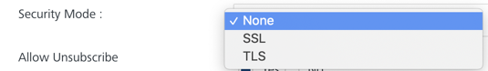 Security Mode: Based on your requirement, select the security mode from the drop-down list as None, SSL (Secure Sockets Layer), or TLS (Transport Layer Security).