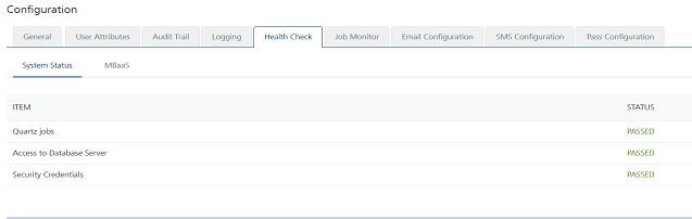 Note: View more health checks once you have logged in to Volt MX multi-tenant console. These include cloud-related results such as SQS URL, Memcache (file system), and static resources.