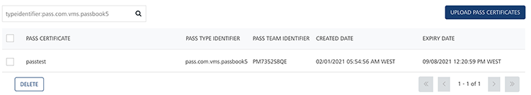 | Pass Certificate | The pass certificate column displays the uploaded pass certificate names.You can use the search option under the Pass Certificate column to search passes based on names of pass certificates. |