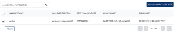 - Upload Pass Certificates button: The button helps you to add new pass certificates in console.