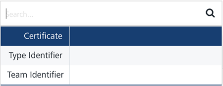 Search field: Click in the search field to view options to search pass certificates. You can search pass certificates based on the following criteria: