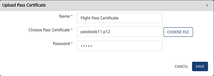 As an administrator, you need to upload Pass certificate, if passes are to be created and sent to users. The Pass certificate is used for pass signing and sending pass updates.