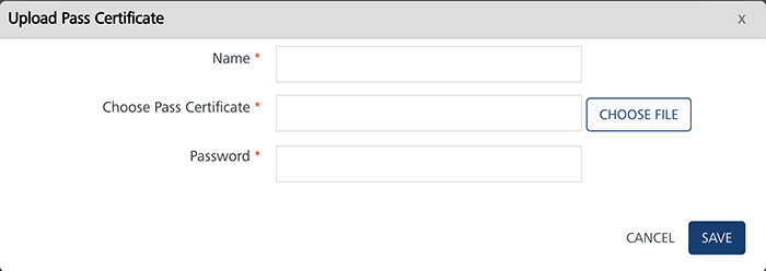 - Choose Pass Certificate: Click Choose File to locate the pass certificate from its location to upload it.