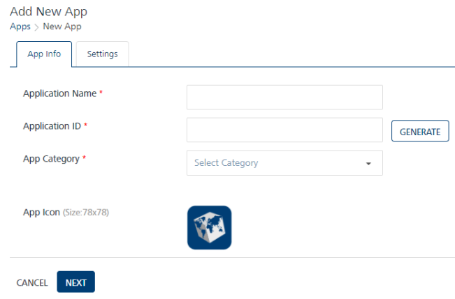 Application ID: Click the Generate button to populate the system- generated application ID in the field. You can even enter the application ID manually in the text field.