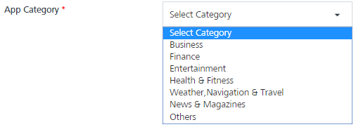 Note: The Application Name, Application ID, and the App Category are the mandatory fields. If you do not enter the details, the system displays an error message that information is required.
