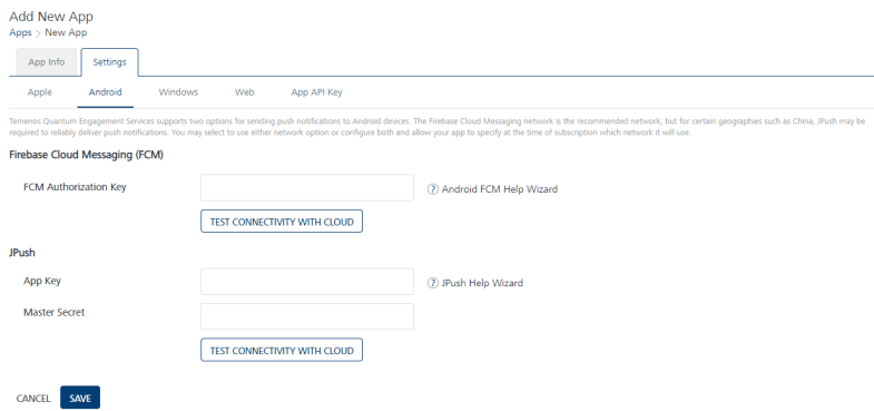 Click the Generating Firebase Cloud Messaging (FCM) Server Key and Sender ID link for more details on how to subscribe for FCM Authorization Key.