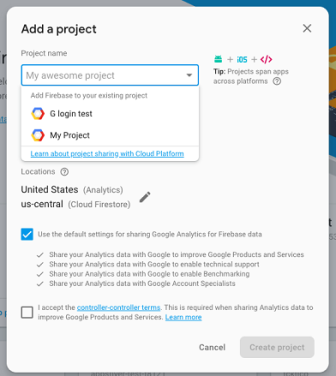 - Project name: Enter the Project name. Based on entered project name, the system generates the project ID. Note that the project name is used only in the Google console and project ID is used to uniquely identify the project name.