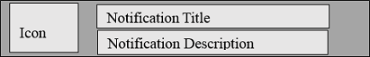 - The notification provides an icon and two-line text for title and description of the message. The notification message appears below:
