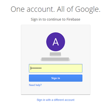 Open the Google developers console window by logging into: https://console.firebase.google.com/