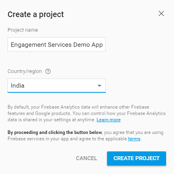 - Project name: Enter the Project name. Based on entered project name, the system generates the project ID. Note that the project name is used only in the Google console and project ID is used to uniquely identify the project name.