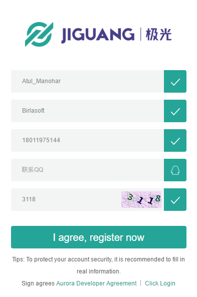 User Name: Enter the user name to register with JPush. The user name should include between five to 20 characters.