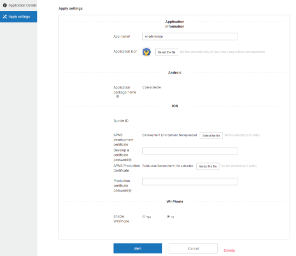 Based on your requirement, complete the changes to update the application. Click Save to update the application details. You can change the app name and application icon.