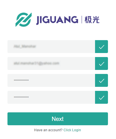 - The JPush page appears with a confirmation message that the authentication message is sent to the registered email address. Access your email account, and open the email sent through JPush to authenticate your user account.