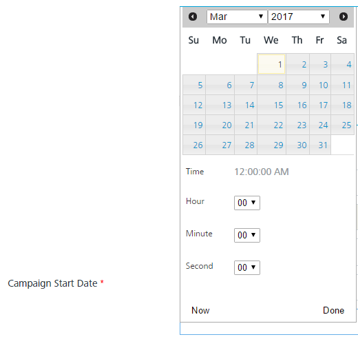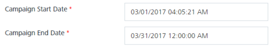 Campaign Start Date: This field is auto-populated with the current date and the current time, when a campaign is created. Based on when the campaign execution must start, you can modify the start date of the campaign.