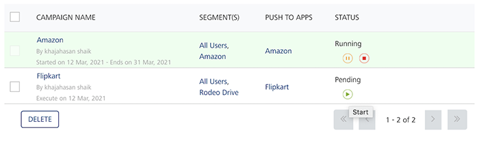 A campaign whose start date is in future and has not started running obtains pending status in the Campaigns list-view. You can change a campaign's start date any time before it is reached.