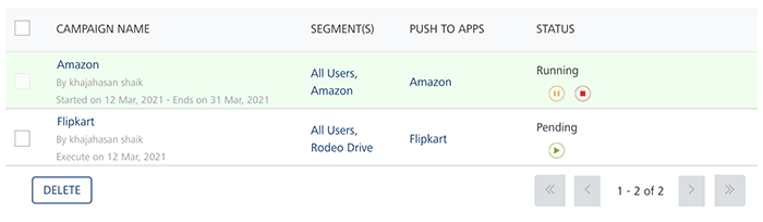 The system displays the confirmation message that the campaign execution initiated successfully. The color and the status of the pending campaign changes in the list-view.