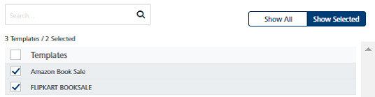 Show Selected: The Show Selected tab displays the selected message templates in the list-view. Select the check-box next to the Templates header to select all the message templates.