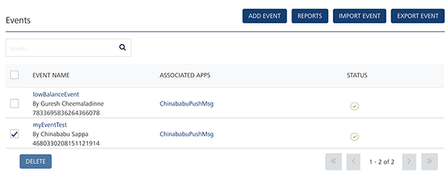 Important: You can delete only deactivated events. If you try to delete an active event, the system displays a warning message that only events with deactivated status can be deleted.