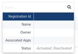• Registration ID: Enter the registration ID in the Search field, and click Enter.