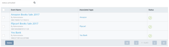 • Status: Based on your requirement, enter the event status as Activated or Deactivated in the Search field, and click Enter.