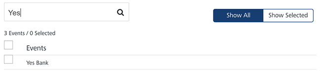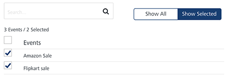 Show Selected: The Show Selected tab displays the selected events in the list-view.