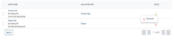 Note: When you update an event, the status icon changes under the status column. The icon signifies that the event is not reactivated after modification. For more details about how to activate the event refer, Reactivating Modified Events