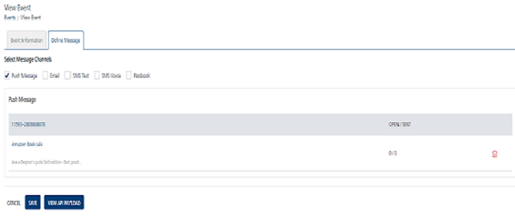 On the View Event screen, click the required push message under the Push Message column.