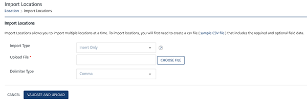 On the Location page, click the Import Geofence button to navigate to the Import Locations page.