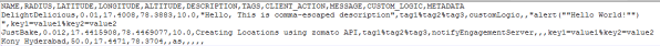 .CSVfile, the data entered in the.CSVfile should have all the mandatory fields. For example, NAME, RADIUS, LATITUDE, LONGITUDE, and DESCRIPTION. You can also use alphanumeric and special characters to fill in the data. -