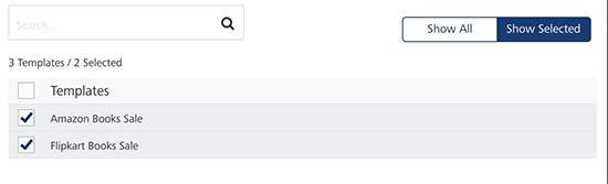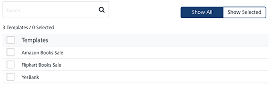 Show Selected: The Show Selected tab displays the selected push templates in the list-view. Select the check-box next to the Templates header to select all the push templates.
